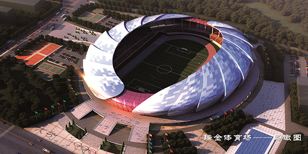 瑞金市體育中心體育場作為國家乙類體育場館,總占地面積150畝,具有跨度大,結構造型復雜、施工難度高等特點。建筑高度挑蓬結構上弧中心最高點為40.5米,為鋼筋混凝土結構、鋼結構合金屋頂。結構寬202米,長219米,總建筑面積為25137.77㎡;屋面由四部分組成,整體為曲面,總用鋼量達到5380噸。在質量控制、科技創新、安全管理、綠色施工等方面均達到國內先進水平,自開館以來已承辦過多次國家、省、市、縣級賽事和活動。