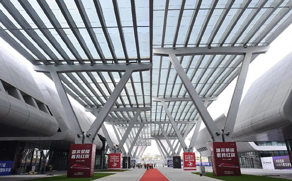 大地鋼構(gòu)作為鋼結(jié)構(gòu)專業(yè)施工單位,在保證施工質(zhì)量和安全的前提下,攻克了相貫線節(jié)點(diǎn)桿件工藝復(fù)雜、厚板焊接及焊縫要求高等施工難點(diǎn)。項(xiàng)目建成投用以來,陸續(xù)成功舉辦了國(guó)際車展、食交會(huì)等多場(chǎng)展會(huì),可謂是當(dāng)之無愧的“新晉”地標(biāo)!