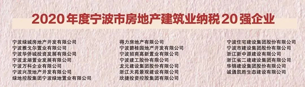 龍元集團上榜2020年度寧波市“納稅50強”、房地產(chǎn)建筑業(yè)“納稅20強”!