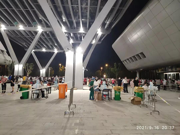 9月16日至17日的夜晚,晉江“四重人員”積極響應、默契配合,在福建晉江市會展中心排出一道道井然有序的隊伍,接受篩查。在應急小組、會展中心、醫護團隊等各部門的全力配合下,順利完成了這次核酸篩查“閃電戰”。