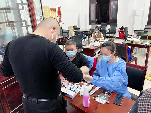 龍?jiān)姓B(yǎng)護(hù)員工胡寒曉發(fā)揮青年黨員帶頭作用,主動(dòng)報(bào)名參加瓜瀝塘上社區(qū)志愿者,負(fù)責(zé)抗原采樣人員的信息登記和檢測(cè)結(jié)果錄入。