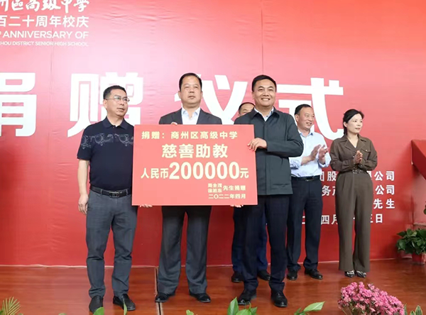 4月23日,由龍元集團承建的陜西商州區高級中學舉辦120周年校慶捐贈儀式。商州區高級中學PPP項目經理周全茂參加捐贈儀式,代表龍元集團向商州區高級中學捐款30萬元。此外,周全茂以個人名義與項目總指揮徐旭東共同出資捐款20萬元,助力當地教育事業發展。