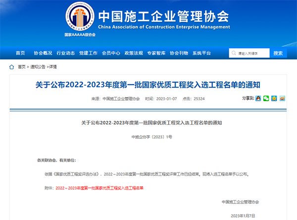 “國家優(yōu)質(zhì)工程獎”設(shè)立于1981年,由中國施工企業(yè)管理協(xié)會組織實施,是經(jīng)國務(wù)院確認(rèn)的中國工程建設(shè)領(lǐng)域設(shè)立最早、規(guī)格最高、跨行業(yè)跨專業(yè)的國家級質(zhì)量獎,其宗旨是弘揚“追求卓越,鑄就經(jīng)典”的國優(yōu)精神,宣傳和表彰設(shè)計優(yōu)、質(zhì)量精、管理佳、效益好、技術(shù)先進(jìn)、節(jié)能環(huán)保的工程項目,是我國工程建設(shè)質(zhì)量方面的最高榮譽。