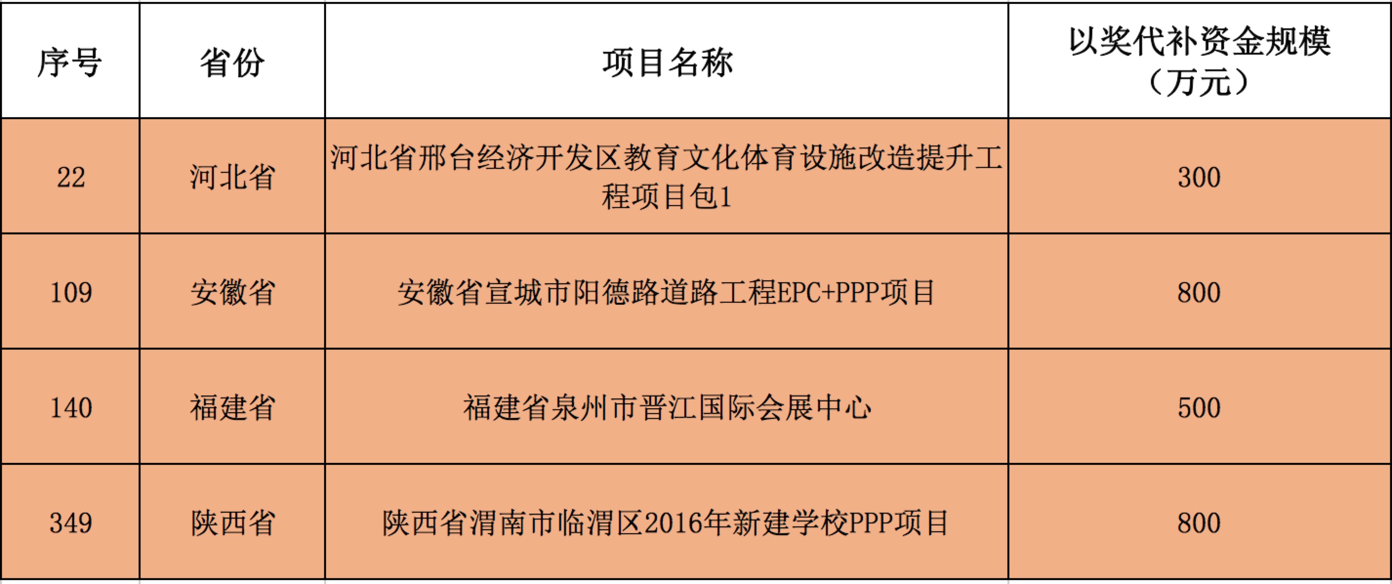 近日,財政部網站發布了《關于下達2018年度普惠金融發展專項資金預算的通知》,通知向各省(自治區、直轄市、計劃單列市)下達2018年度普惠金融發展專項資金預算。龍元建設集團中標的晉江國際會展中心、宣城陽德路道路等4個PPP項目獲財政部以獎代補資金支持,支持金額合計2400萬元。